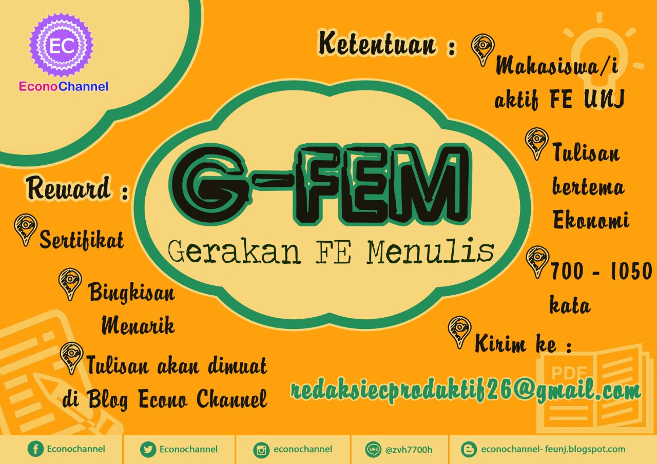 penulisan adalah tulisan (selain puisi) berisikan minimal 350 kata, dikirim ke econochannel@gmail.com disertakan dengan foto formal