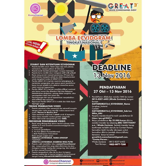 Penilaian ECVidgram akan disesuaikan dengan isi video, kreativitas peserta,