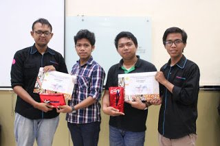 (Pemberian Bingkisan kepada pembicara Akbar Evandio)