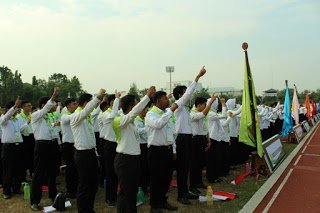 dipandu oleh Awaludin, yang dilanjutkan menyanyikan hymne UNJ yang dipandu oleh