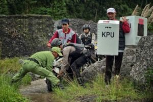 Para petugas keamanan yang berjaga siang dan malam, bahkan ada yang harus menyeberangi pulau dan menyusuri bukit. Merekalah yang berjibaku melawan sulitnya medan, cuaca, dan kondisi di daerah-daerah dalam mendistribusikan surat suara dan logistik pemilu 2019 ke seluruh pelosok negeri untuk memastikan seluruh rakyat Indonesia bisa memberikan hak suaranya. Pahlawan demokrasi ikhlas mempersembahkan waktu, tenaga, pikiran, bahkan jiwanya karena bagi mereka pengorbanan ini adalah bentuk pengabdian kepada negara. Begitu hebat usahanya untuk bisa mewujudkan perhelatan akbar ini terselenggara dengan lancar, mereka bekerja keras untuk pastikan pemilu 2019 berjalan dengan aman, jujur, dan adil.
