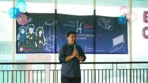 Disaat Faiz sedang stand-up, tiba-tiba lampu padam dan beberapa panitia masuk dengan membawa kue ulang tahun, semua ikut bernyanyi lagu selamat ulang tahun dan dilanjutkan sesi foto bersama, semua yang hadir terlihat menampakkan raut wajah bahagia, mengingat usia EC yang sudah menginjak angka ke-14, perjalanan yang sudah panjang harus diteruskan dan ditingkatkan untuk kemajuan EC yang lebih bagus lagi baik dilingkup Fakultas Ekonomi, Universitas Negeri Jakarta, tetapi juga di luar universitas. (CDF/RFH)