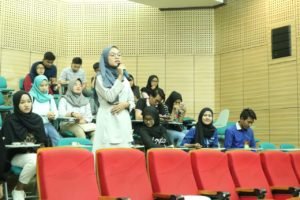Kemudian dibuka sesi tanya jawab, salah satunya adalah Bunga dari Fakultas Bahasa dan Seni ia menanyakan tentang bagaimana mahasiswa yang introvert untuk survive di era ekonomi ini, kemudian dijawab oleh Afif Akbar Iskandar bahwa jangan jadikan diri pandangan introvert dalam diri kita batas untuk kita melakukan suatu hal, belajar melatih diri untuk berani melawan rasa takut kita dan mulailah fokus pada apa yang ingin kita kembangkan.