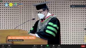 Acara dilanjutkan dengan persembahan lagu “Tanah Tumpah Darahku” oleh paduan suara. Setelah itu, Pak Ari kembali membacakan daftar riwayat hidup dari Prof. Dr. Harya Kuncara Wiralaga, S.E,. M.Si. yang bergerak di bidang ilmu ekonomi menyampaikan orasi ilmiahnya yang berjudul “Mewujudkan Kredibilitas Fiskal dalam Rangka Pemulihan Ekonomi”. Dalam orasinya, beliau memaparkan kebijakan fiskal yang sebetulnya dilandasi dengan pemikiran harus menggunakan rules karena time lag-nya lebih pendek dibandingkan dengan diskreksi. Kebijakan fiscal yang berbasis aturan mendorong kebijakan konsolidasi fiscal dan inilah yang sedang terjadi di Indonesia. IMF membagi aturan fiscal dengan penerimaan, belanja, utang, dan defisit primer atau total. Aliran ekonomi tampaknya mendukung aliran fiscal yang berbasis pada aturan. Di akhir orasinya, beliau menyampaikan terima kasih kepada orang-orang sekitar yang selalu mendukungnya.