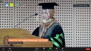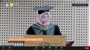 Acara dilanjutkan dengan persembahan lagu yang berjudul “Kampuang Nan Jauh di Mato” oleh paduan suara. Setelah itu, Pak Ari kembali membacakan daftar riwayat hidup dari Prof. Dr. Sri Indah Nikensari, S.E., M.Si. dan Prof. Dr. Dra. Hj. Dewi Susita, M.Si yang bergerak di bidang ilmu ekonomi menyampaikan orasi ilmiahnya yang berjudul “Strategi Mewujudkan Tujuan Pembangunan Berkelanjutan Melalui Perdagangan Internasional.” Dalam orasinya beliau memaparkan resume target dan capaian di tahun 2019 sampai 2020. Tujuan pertamanya adalah menghapus kemiskinan. Tujuan tersebut tercapai di tahun 2019 tercapai, tetapi pada tahun 2020 tidak tercapai, kehidupan sehat dan sejahtera pada tahun 2019 dan 2020 tidak tercapai, Pendidikan berkualitas pada tahun 2019 tercapai tetapi pada tahun 2020 tidak tercapai. Sama halnya dengan tujuan kedua, yaitu kemitraan global untuk mencapai tujuan, yang tidak tercapai pada tahun 2019-2020, tetapi pada 2021 tercapai. Di akhir orasinya, beliau menyampaikan terima kasih kepada orang-orang sekitar yang selalu mendukungnya.