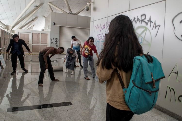 Meskipun berdekatan dengan fasilitas LRT, Train to Apocalypse sama sekali tidak mengganggu aktivitas LRT Jakarta. Petugas LRT juga terlihat membantu dan mengarahkan penumpang untuk memastikan kelancaran perjalanan.