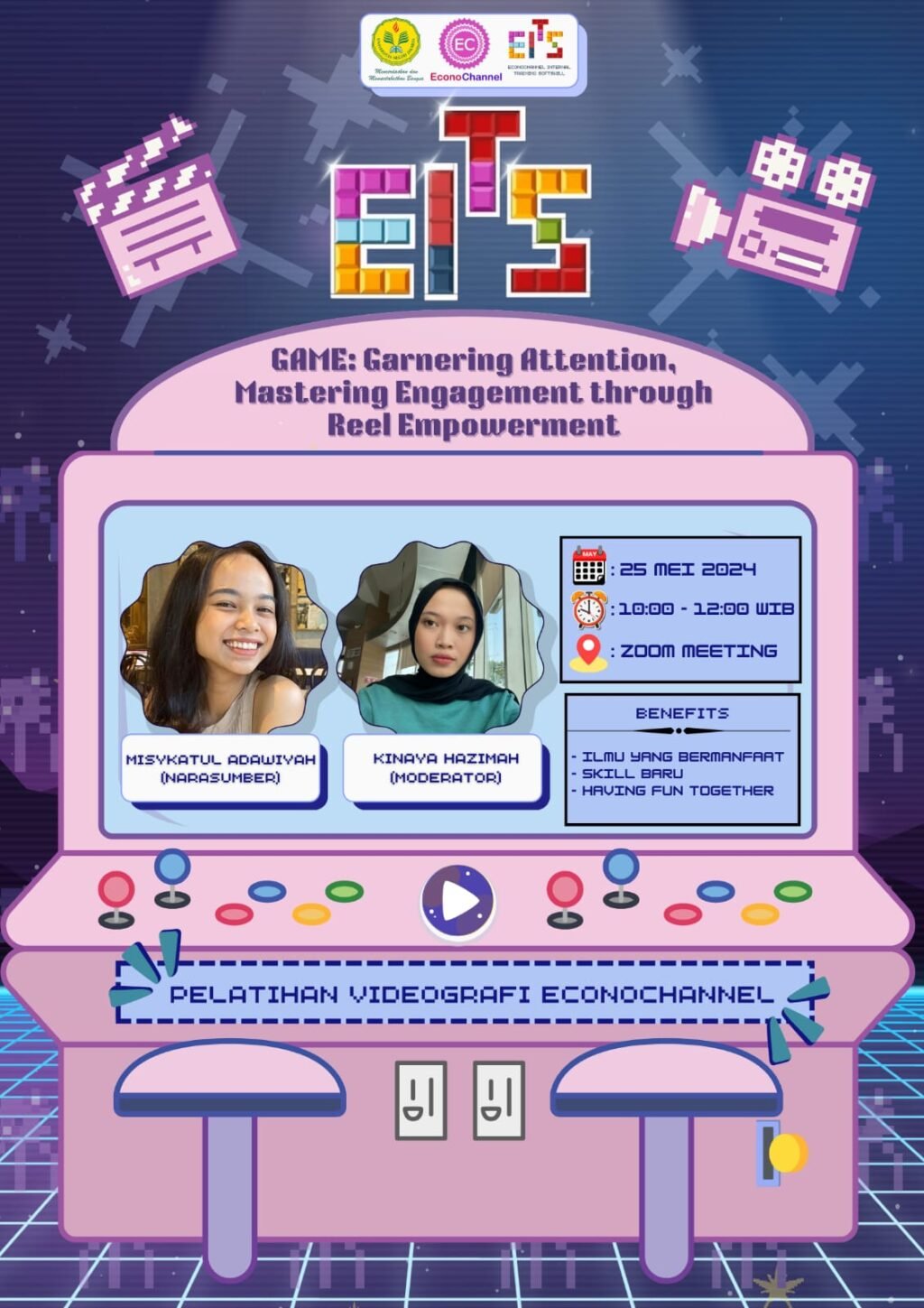 Jakarta – Sabtu, 25 Mei 2024, Subdepartemen Fotografi EconoChannel, sukses melaksanakan acara yang bernama EITS (EconoChannel Internal Training Softskill). Acara ini mengangkat tema “GAME: Garnering Attention, Mastering Engagement through Reel Empowerment”. EITS merupakan salah satu program kerja Subdepartemen Fotografi yang bertujuan untuk memberikan pelatihan videografi khusus untuk anggota EconoChannel.