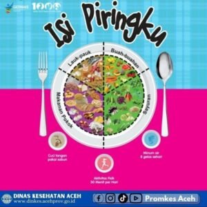 Berdasarkan konsep “Isi Piringku”, setengah piring berisi buah-buahan dan sayuran dengan porsi sayur yang lebih banyak dibanding buah, sedangkan setengah piring lainnya berisi makanan pokok dan lauk pauk.