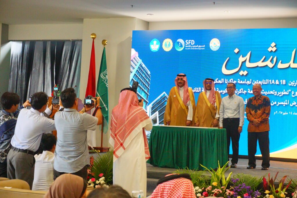 Dalam sambutannya, Prof. Dr. Komarudin menyampaikan bahwa pembangunan gedung baru ini merupakan langkah strategis dalam meningkatkan kualitas fasilitas akademik dan kemahasiswaan di UNJ. Sementara itu, Prof. Brian Yuliarto dalam sambutannya sebagai perwakilan Presiden RI, menyampaikan apresiasi atas kontribusi Kerajaan Arab Saudi melalui Saudi Fund for Development (SFD). “Kolaborasi ini tidak hanya mendukung pembangunan infrastruktur pendidikan, tetapi juga mempererat hubungan bilateral antara Indonesia dan Arab Saudi,” jelasnya.