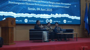 Salah satu hal yang tidak terduga dalam pembukaan adalah penayangan video apresiasi dari Anies Baswedan, tokoh nasional yang menjadi perhatian dalam memberikan dukungan terhadap semangat dialog dan refleksi kritis yang diusung oleh mahasiswa. Selanjutnya, acara memasuki sesi utama dengan pengenalan moderator, yaitu Galang Hikmal, Ketua Umum BEM Prodi Ekonomi dan Administrasi 2025, yang memandu diskusi dengan penuh semangat dan interaktif.