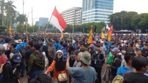 Di lapangan, massa aksi membawa berbagai spanduk, poster, dan yel-yel yang menegaskan bahwa mereka tidak akan diam. Teriakan “hidup rakyat!” menggema di tengah kepungan aparat bersenjata lengkap. Meski dihadang, semangat perlawanan tidak surut, tetapi justru makin menyala.