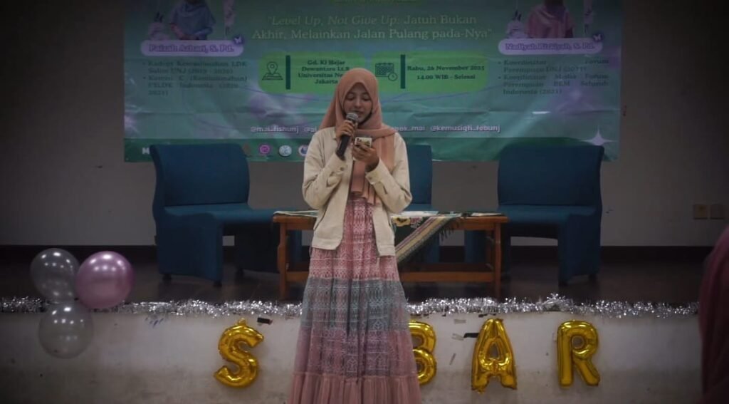 Jakarta—Rabu, 26 November 2025, Kajian SABAR (SEMUT x Anisa Akbar) telah diselenggarakan di Gedung Ki Hajar Dewantara, Lantai 8, Universitas Negeri Jakarta. Kegiatan tersebut menjadi wadah refleksi dan penguatan spiritual bagi para muslimah dalam menghadapi dinamika kehidupan.